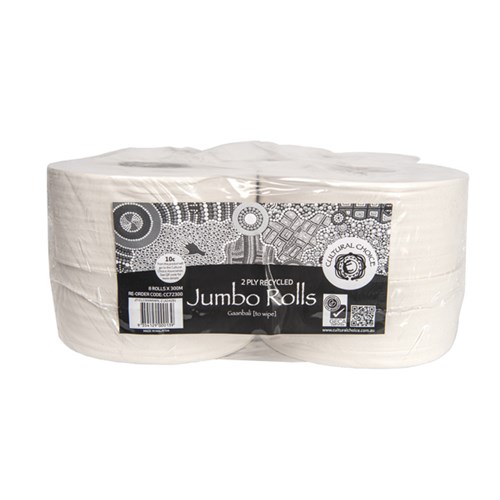 Cultural Choice Jumbo Toilet Roll Recycled 2 Ply 300m x 8 rolls 75mm core(Toilet Roll)