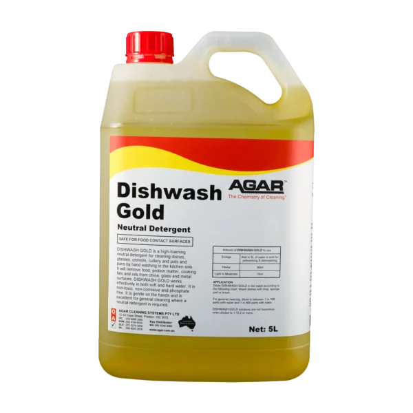 DISHWASH GOLD conforms with all statutory environmental requirements. It is based on safe ingredients selected to perform efficiently so there is no waste or damage. DISHWASH GOLD is non-flammable, contains no added phosphates and is biodegradable. DISHWASH GOLD containers will be cleaned and reused if returned to Agar Cleaning Systems Pty Ltd., significantly reducing plastic usage and waste. They can also be recycled.