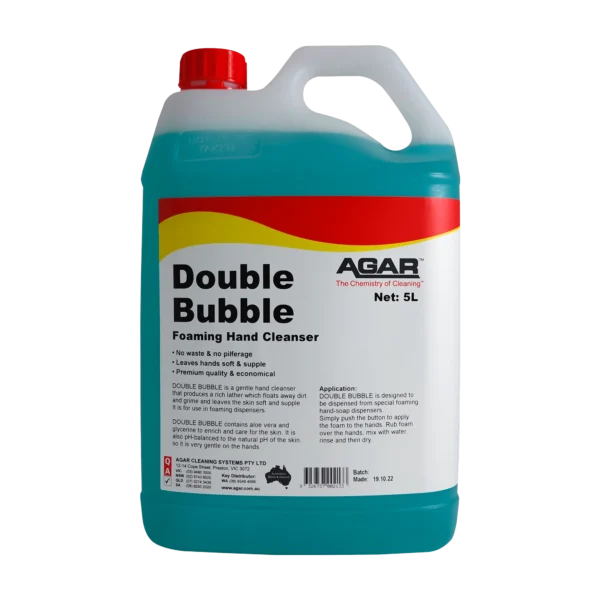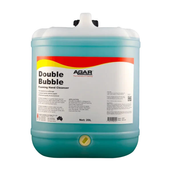 DOUBLE BUBBLE is a gentle hand cleanser for use in offices, washrooms and factories where moderate to light soilage must be washed from the hands.