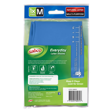 Ideal for cleaning, garbage disposal & dishes., Textured fingers & palms for improved grip whilst wet., Well fitted., Made from natural Latex – thick & durable.