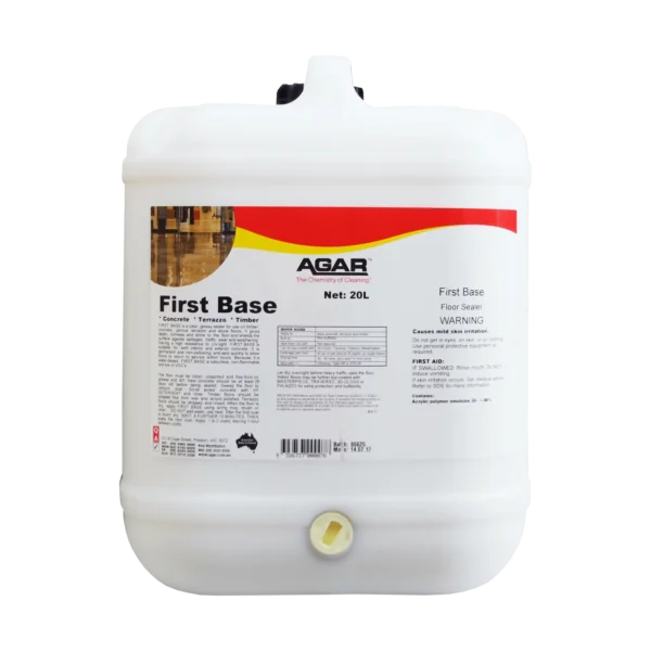 FIRST BASE is a clear, non-slip polish designed for application to vinyl, timber, terrazzo, porous stone and concrete floors. Being waterbased, it sets quicker than solvent-based sealers, so floors can return to service within hours. FIRST BASE is excellent in food storage areas where solvents are not permitted. FIRST BASE is a base-coat that is only to be used directly in contact with the bare floor surface.