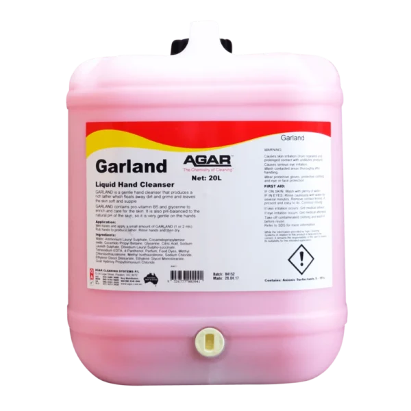 GARLAND instantly produces a rich lather that floats away dirt and grime from the hands and leaves the skin soft and supple. GARLAND contains provitamin B5 and glycerine to enrich and care for the skin.