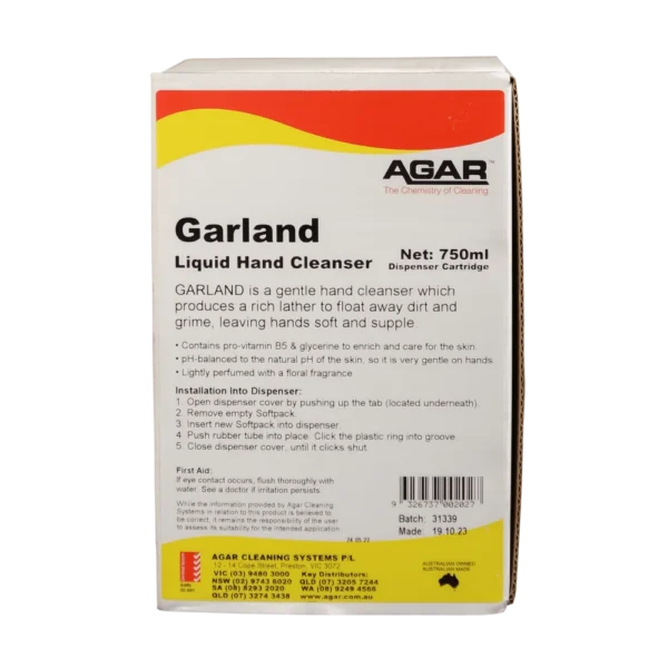 A premium quality hand cleanser for use where regular hand washing is required. A rich lather floats soil from the hands leaving skin feeling clean, soft and supple. Added vitamins in Garland enrich and care for the skin so it can be used throughout the day.