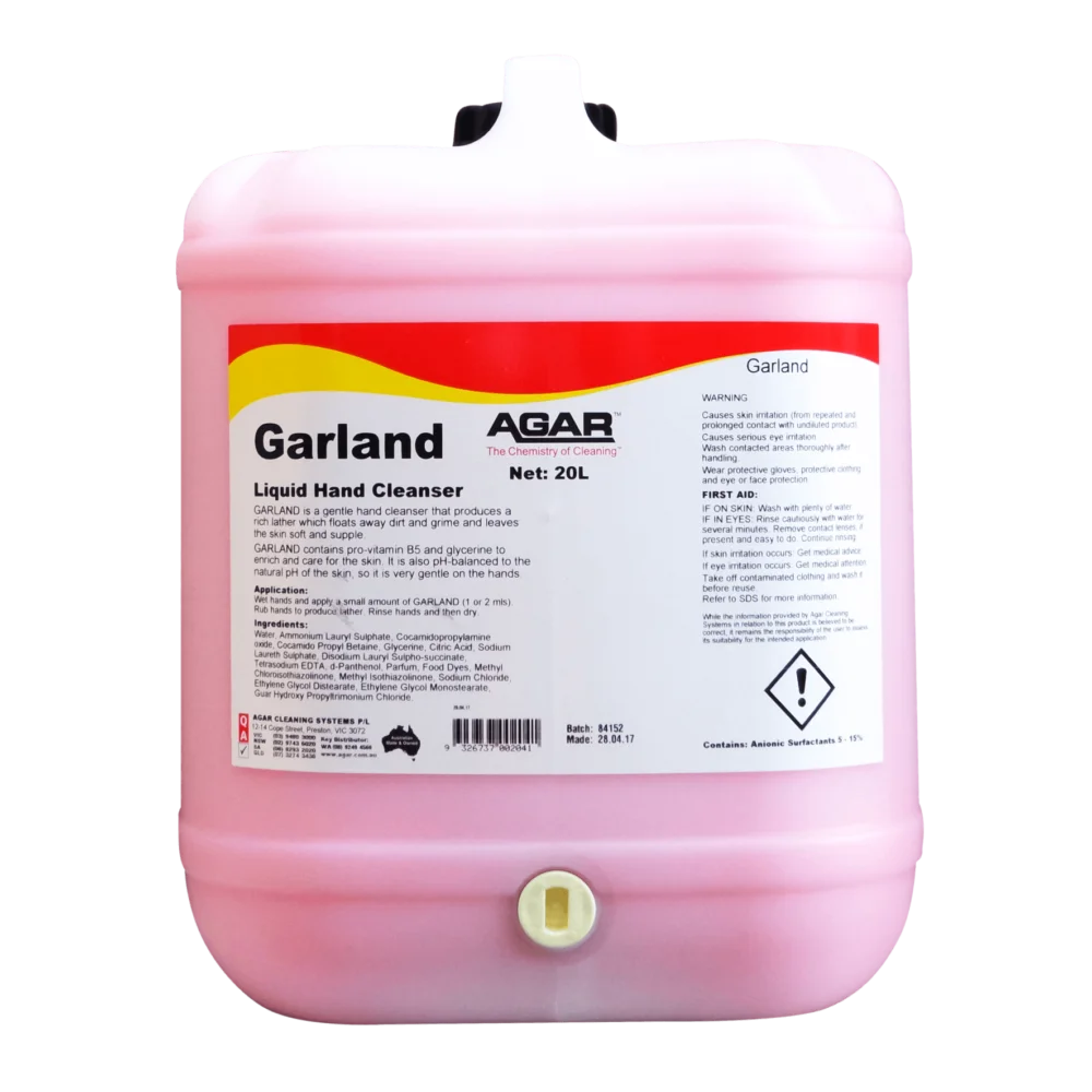 GARLAND instantly produces a rich lather that floats away dirt and grime from the hands and leaves the skin soft and supple. GARLAND contains provitamin B5 and glycerine to enrich and care for the skin.