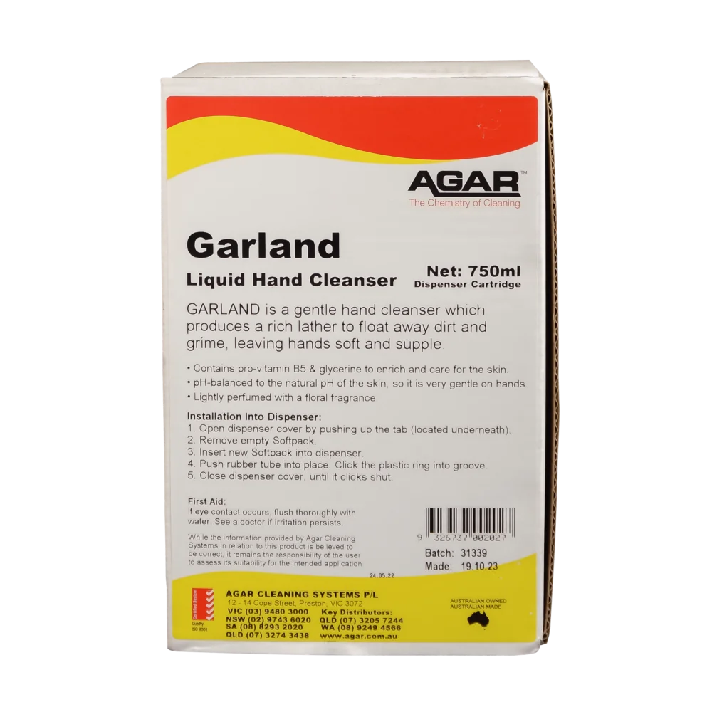 A premium quality hand cleanser for use where regular hand washing is required. A rich lather floats soil from the hands leaving skin feeling clean, soft and supple. Added vitamins in Garland enrich and care for the skin so it can be used throughout the day.