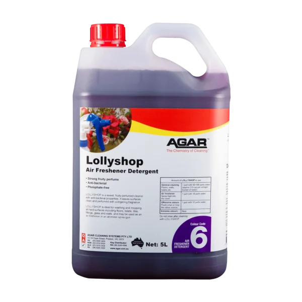 LOLLYSHOP is a strong deodorising detergent with the cleaning and germ-killing action needed to remove offensive and putrid soilage matter. After removing the source of the bad odour the perfume of LOLLYSHOP reodourises the surface with a pleasant lingering fragrance.