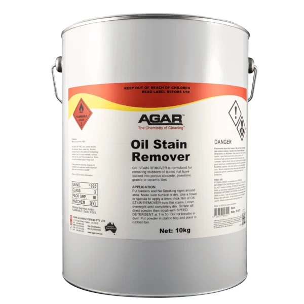 OIL STAIN REMOVER can be used on any hard surface that has embedded oil stains. It is therefore suitable for concrete, bluestone, granite, ceramic tiles, terracotta, marble, limestone and terrazzo. OIL STAIN REMOVER removes engine oil, hydraulic fluid, brake fluid, cooking oil, fat and dripping.