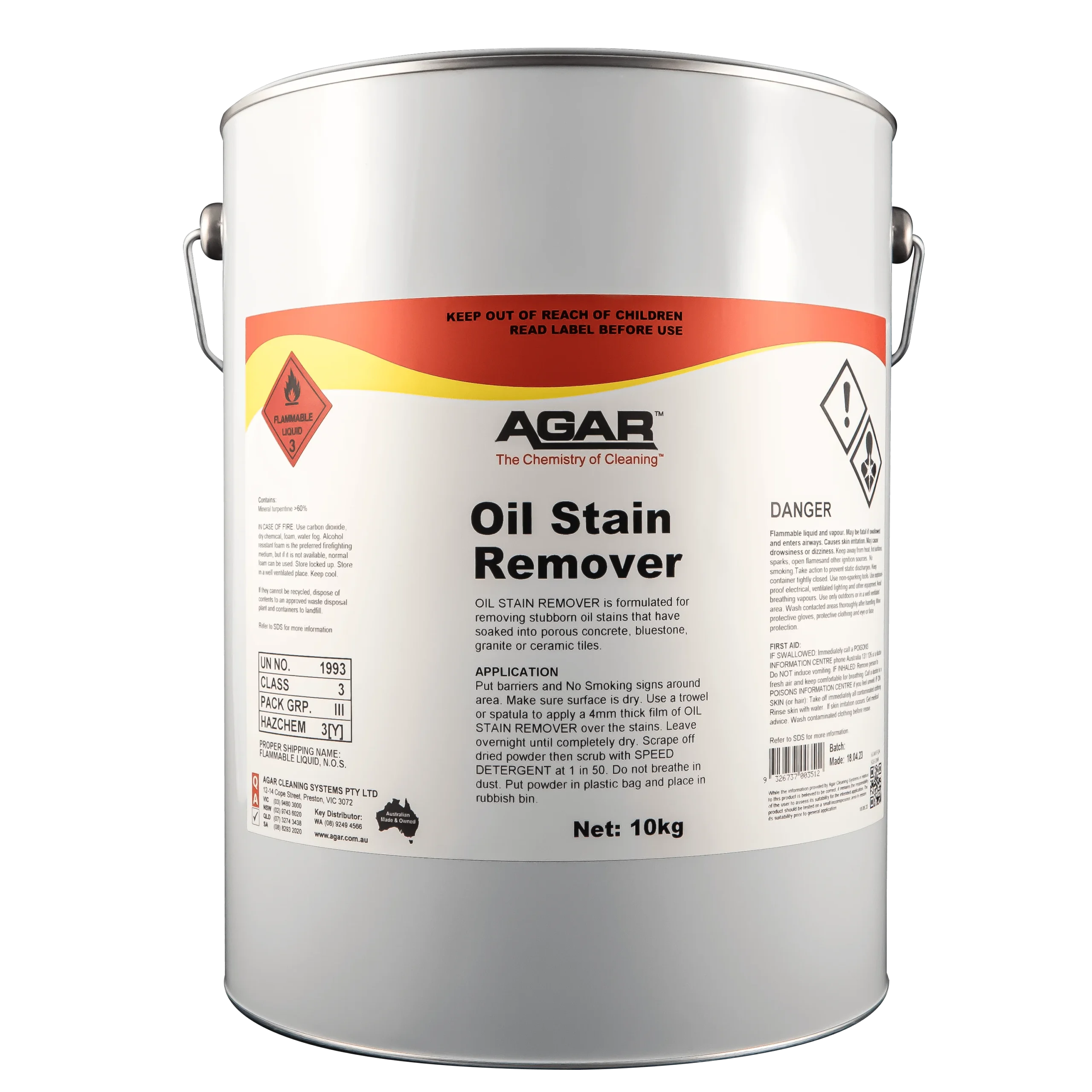 OIL STAIN REMOVER can be used on any hard surface that has embedded oil stains. It is therefore suitable for concrete, bluestone, granite, ceramic tiles, terracotta, marble, limestone and terrazzo. OIL STAIN REMOVER removes engine oil, hydraulic fluid, brake fluid, cooking oil, fat and dripping.