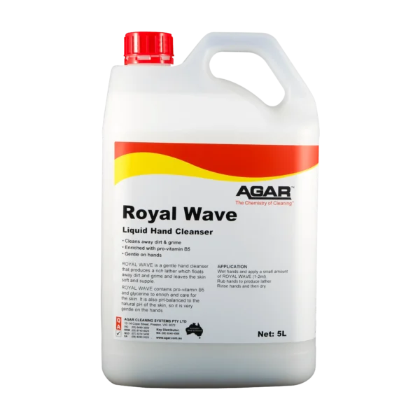 ROYAL WAVE is a thick liquid soft that instantly produces a rich lather that floats away dirt and grime from the hands. It leaves the skin soft and supple. ROYAL WAVE contains provitamin B5 and glycerine to enrich and care for the skin.
