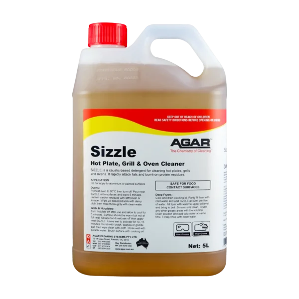 SIZZLE is a caustic-based detergent for cleaning hot-plates, grills and ovens.