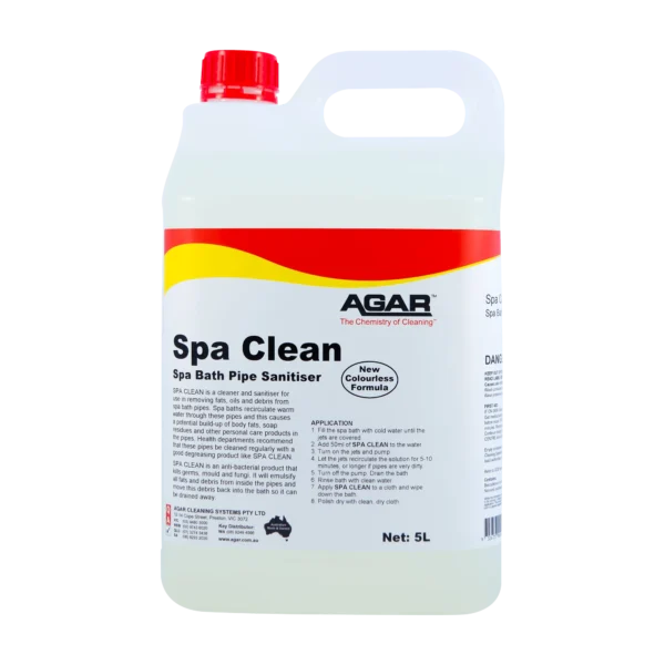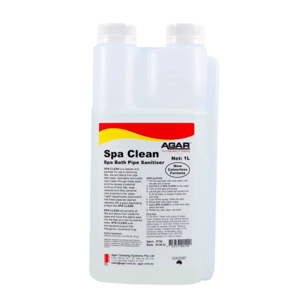 SPA CLEAN is a cleaner and sanitiser for use in removing fats, oils and debris from spa bath pipes.