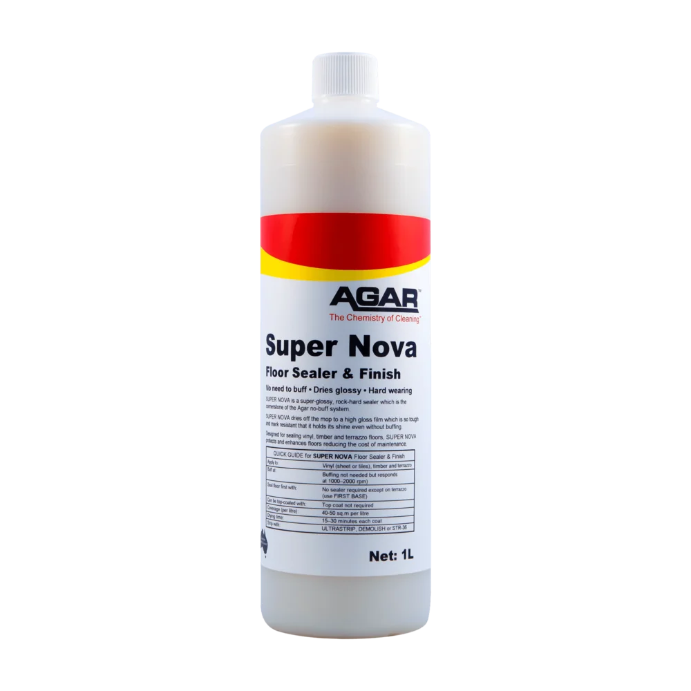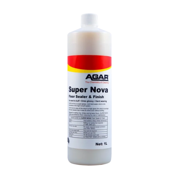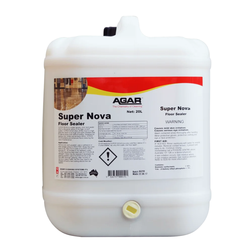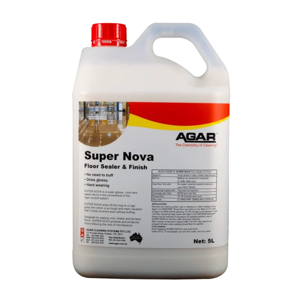 SUPER NOVA is a non-slip polish for vinyl, sealed timber and terrazzo floors. It repels scuffs, scratches and traffic marks and lasts exceptionally well, SUPER NOVA is ideal for use on floors that are not buffed. In fact, floors can be maintained without a buffing machine when SUPER NOVA is used.