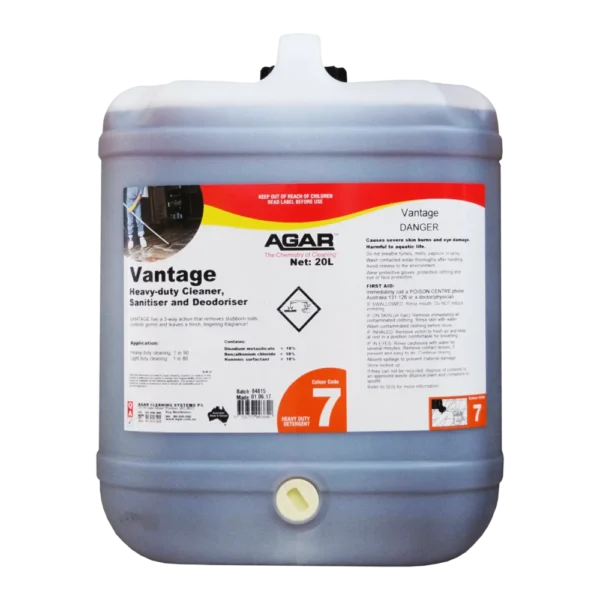 Vantage is a fragrant, powerful, all-purpose detergent that cleans, sanitises and deodorises all hard surfaces in one step.