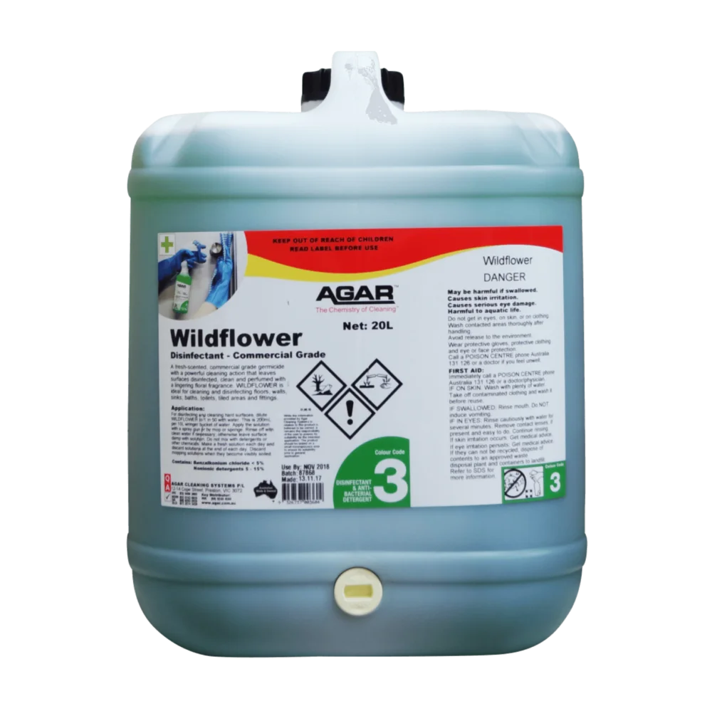 WILDFLOWER is designed for cleaning and disinfecting all washable hard surfaces, including floors, walls, sinks, baths, toilets, tiled areas and fittings. WILDFLOWER may also be used as an air-freshener.
